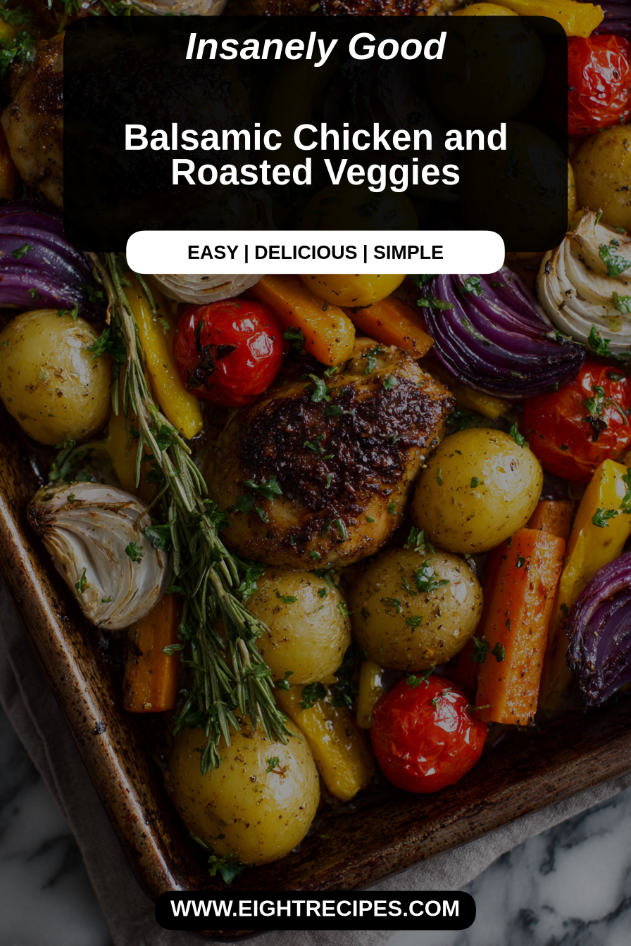 This recipe grew from a few experiments trying to get a reliable glaze without burning the pan. The trick is to let the balsamic reduce gently so it thickens and coats the chicken instead of puddling or scorching. Roasting the vegetables on the same tray concentrates their sugars and creates those irresistible browned edges, but give each item enough space so they roast rather than steam. I also learned that a short rest for the chicken after it comes out of the oven keeps it juicy and lets the glaze set so it’s not slipping off the plate. Small finishes — a scatter of fresh herbs, a lemon squeeze, or a quick drizzle of extra balsamic — take it from solid to memorable.