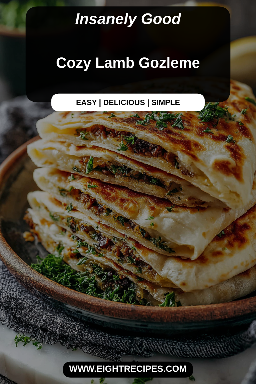 This delightful lamb gozleme is a warm, flaky pastry filled with savory spiced lamb, perfect for a comforting meal.