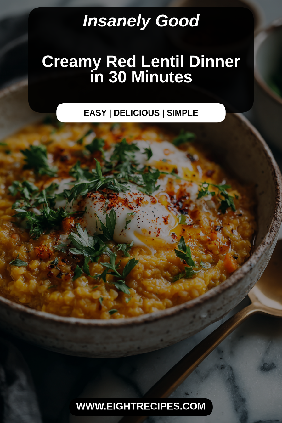 This creamy red lentil dinner is wonderfully satisfying on its own, but it also pairs beautifully with a side of warm naan or crusty bread for dipping. A simple green salad with a lemon-tahini dressing offers a fresh contrast, or you could serve it over a bed of fluffy basmati rice to soak up all the flavorful sauce.