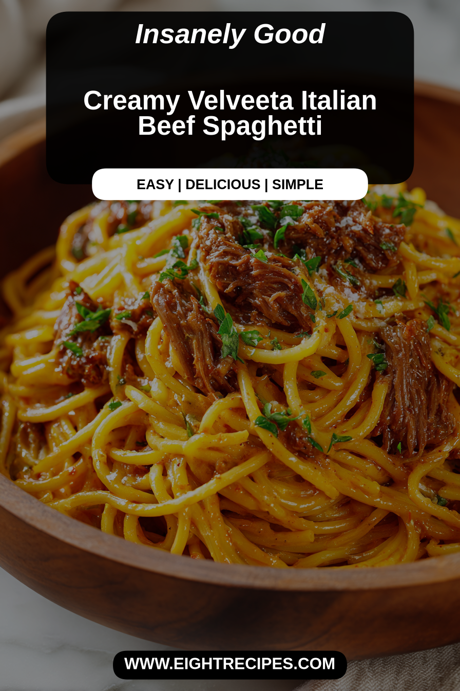 This creamy, cheesy weeknight pasta takes two comfort-food favorites—Velveeta and Italian-style shredded beef—and turns them into a saucy, spoonable spaghetti that’s unapologetically nostalgic and wildly satisfying. It’s the kind of dish that looks like a cheat but tastes like a cozy dinner you actually planned; Velveeta melts into a silky, clingy sauce while the seasoned beef brings savory depth and a little tang from Italian seasonings. If you love dishes that feed a hungry family fast and encourage second helpings, this one deserves a spot in your rotation.