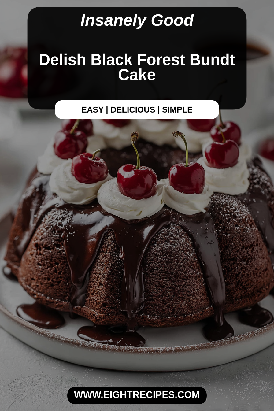 This delectable Black Forest Bundt Cake combines rich chocolate and luscious cherries, making for a truly delightful dessert that’s perfect for any occasion.