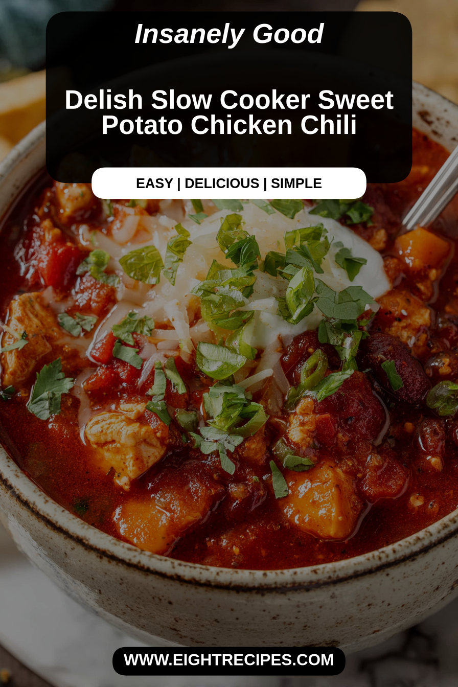 This is a cozy, spoonable chili built around sweet potatoes and tender chicken, slow-simmered until the flavors feel like a warm hug. It’s not overly fussy—just a handful of pantry staples and a slow cooker doing the heavy lifting—yet the result tastes thoughtful and homey, with a bright tomato base, warming spices, and the sweet, creamy lift of roasted sweet potatoes.