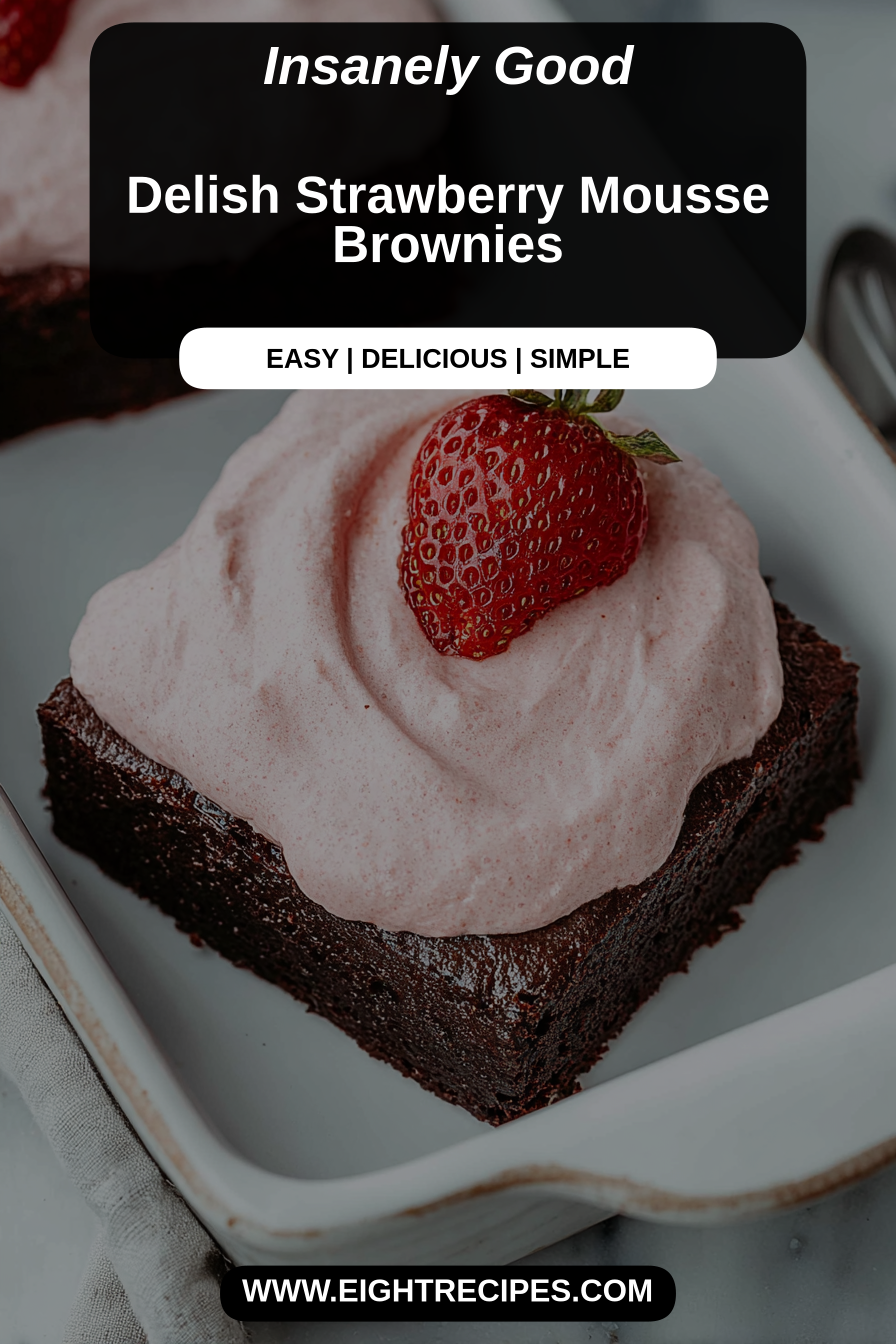 This is a shine-on-your-table dessert: fudgy chocolate brownies finished with a cloud of strawberry mousse that’s bright, creamy, and just a little fancy without being fussy. The contrast of dense brownie and airy mousse makes every forkful interesting — chocolate grounds it, strawberry sings on top — and it’s one of those recipes that always gets asked about at the end of the night.
