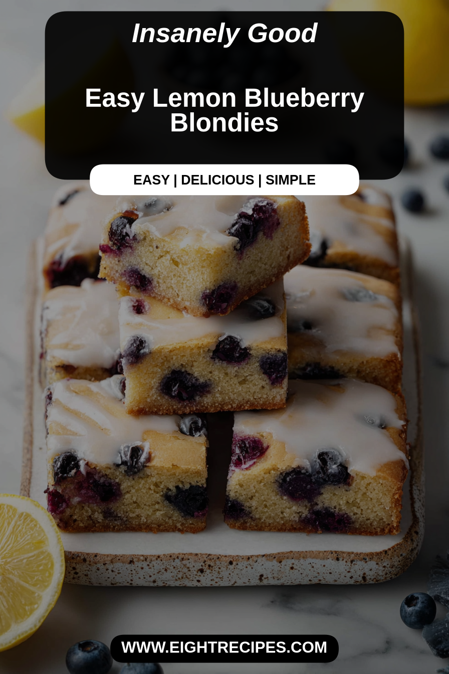 These blondies are lovely on their own with a cup of coffee or tea, but they also pair well with a scoop of vanilla ice cream, a dollop of lightly sweetened whipped cream, or a drizzle of lemon glaze. For brunch, serve alongside yogurt and fresh fruit; for dessert, a small spoon of mascarpone on the side makes them feel special.