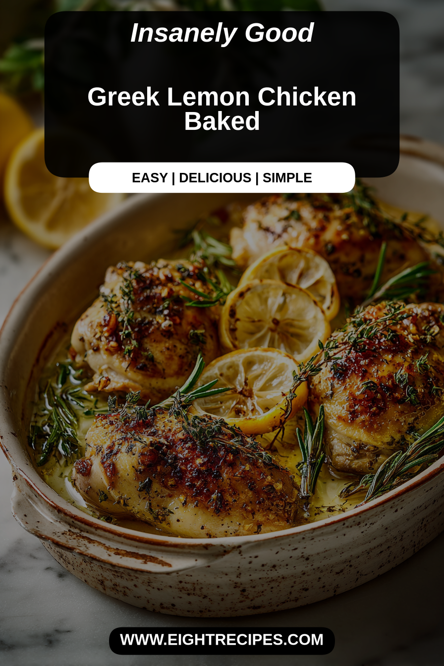 Bright, vibrant, and endlessly comforting, this Greek Lemon Chicken Baked is the kind of weeknight dinner that looks like you fussed and tastes like you didn’t. It’s roast chicken brightened with lemon, garlic, oregano, and a drizzle of olive oil until the skin crisps and the juices run clear — the flavors lean Mediterranean without being fussy, which makes it perfect for dinner parties and simple family meals alike.