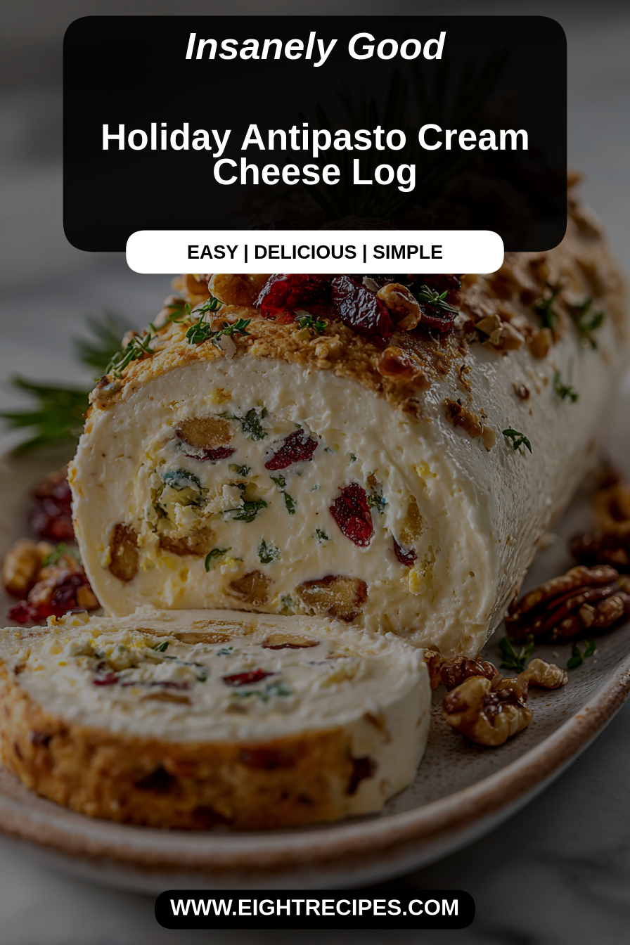 This cream cheese log is a bright, savory holiday appetizer that layers whipped cream cheese with chopped antipasto — think salami, roasted red peppers, olives, capers, and fresh herbs — then rolls into a festive log and chills until sliceable. It’s one of those easy-but-impressive bites that looks like effort but mostly relies on good-quality ingredients and simple assembly. Perfect for parties, potlucks, or a cozy family appetizer night when you want something shareable and undeniably festive.