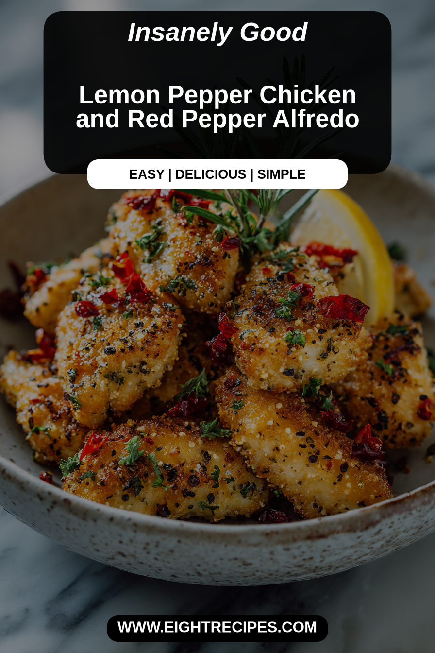 This Lemon Pepper Chicken and Red Pepper Alfredo is one of those weeknight recipes that feels indulgent without being fussy — tender, lemony chicken nestled in a silky, roasted red pepper–infused Alfredo that brightens the whole plate. The lemon pepper seasoning gives the chicken a bright, peppery lift that cuts through the creaminess, while the red pepper purée adds sweetness and color so the sauce never tastes one-note. It’s comforting, homey, and somehow elegant enough for company.