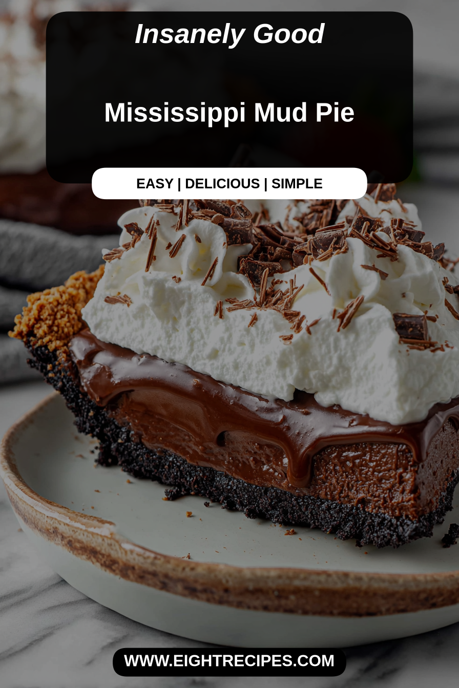 This Mississippi Mud Pie is a gleefully indulgent chocolate dessert — a dark, fudgy filling layered over a crunchy cookie crust, finished with a glossy chocolate ganache and clouds of whipped cream. It’s one of those show-stopping sweets that somehow manages to be both rich and comfortingly familiar: dense cocoa, a little coffee depth to boost the chocolate, and just enough texture contrast to keep every forkful interesting.