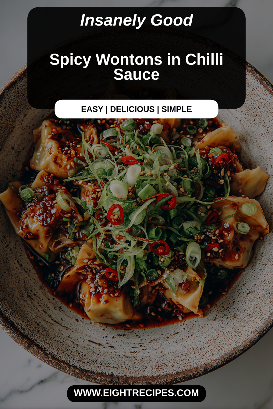 These Spicy Wontons in Chilli Sauce are fantastic on their own as an appetizer or a light meal. For a fuller spread, they pair beautifully with a simple bowl of steamed jasmine rice to soak up every last drop of that incredible sauce. A crisp, cool cucumber salad or blanched gai lan (Chinese broccoli) with oyster sauce would offer a refreshing contrast to the heat and richness. They also complement other Asian-inspired dishes like a simple stir-fry or a bowl of hot and sour soup.