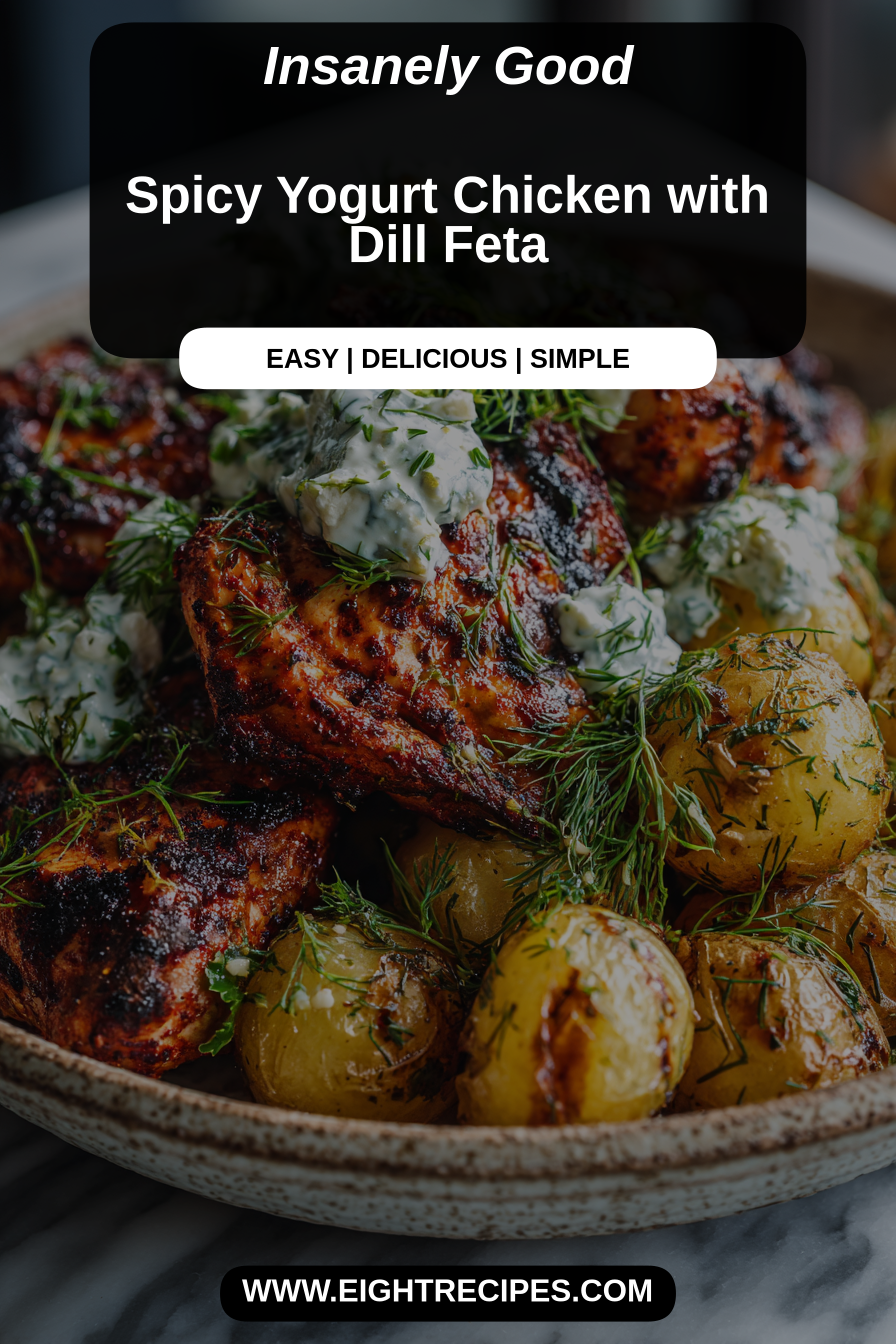 This Spicy Yogurt Chicken with Dill Feta is a bright, slightly tangy weeknight chicken that manages to be both comfortingly familiar and a little bit adventurous—think creamy, cooling yogurt meeting a lively chili-forward rub, finished with a salty, herb-studded dill feta that breaks into little pockets of tang on each bite.